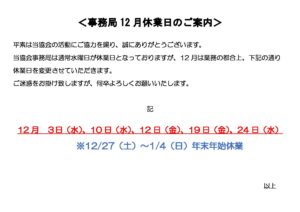 12月休業日案内